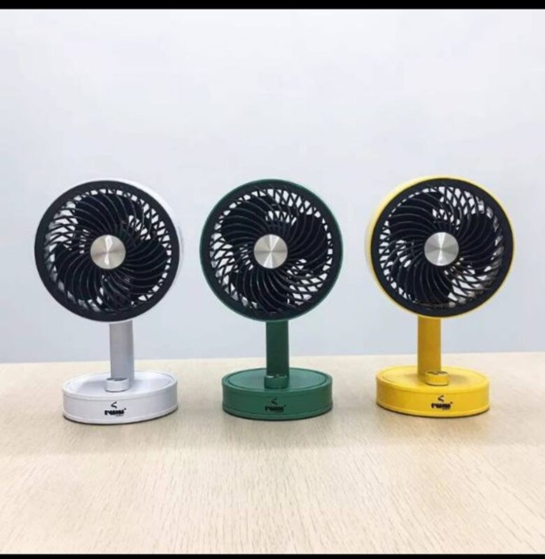 The Portable Rechargeable Fan is a compact and energy-efficient cooling solution designed for use during power outages and on-the-go situations. With a built-in rechargeable battery, it provides reliable airflow without constant power supply, making it ideal for homes, offices, hostels, travel, and outdoor activities.