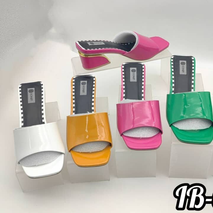 1B-61 Glossy Open-Toe Slide Sandals