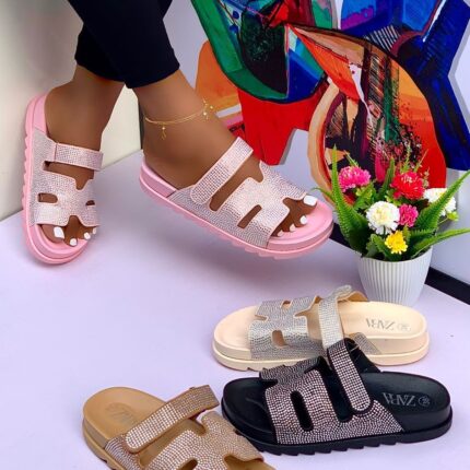 Step out in effortless style with these Ladies Platform Slide Sandals. Designed with a comfortable wedge sole and a bold patterned strap, they combine fashion and everyday practicality. The elevated sole gives you added height while maintaining stability and comfort for extended wear.