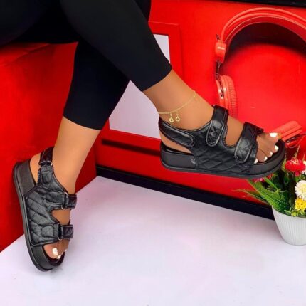 This product is a pair of Quilted Triple-Strap Platform Sport Sandals.